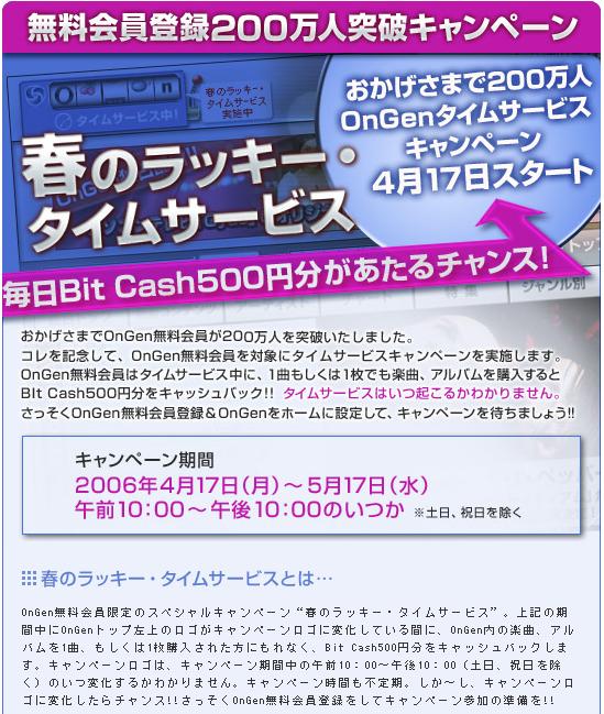 そのOnGenが会員登録200万人突破を記念して、4/17から「BitCash」500円分が当たるキャン