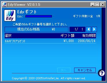 「Edy Viewer」というチャージしたり残高を確認するアプリに「Edyギフト」と言う項目があって、そこを押したらすぐ1,000円チャージされました