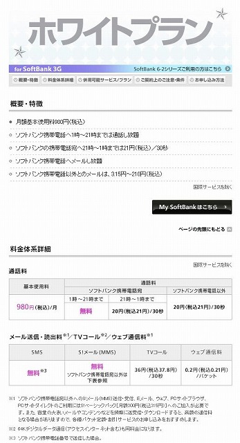 で、新しく始まるSoftbank携帯の「ホワイトプラン」が、いろいろ条件はあるものの、条件を理解し使用すれば却って安上がりになるんじゃないかとちょっと調べました。
