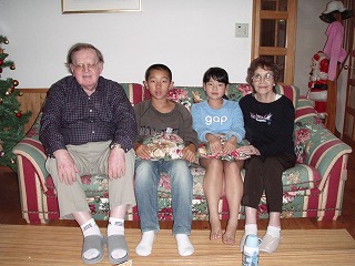 10月30日~今日11月14日まで主人の母の姉夫婦がアメリカから来唐し我が家に16日間宿泊していました。私自身は仕事のため、たいした事は出来なかったんだけどその他家族(義母、義父、義叔母、義叔父、義姉、主人、子供たち)はハロウィンがあり、唐津くんち、佐世保へ行き、お墓参りをし、福岡へ食事に出かけたりと充実した半月だったようです。上の画像の今年のハロウィンには8名の子供達が参加。主人の実家に「Tric or treet!」と行けば本場の(?)伯父が待っていて「Happy Halloween!」と出迎えてくれ、その本物の外人さんに子供達はびっくり仰天!「・ ・ ・ ・ ・ ・」無言になってしまった(^^)「えんや~!えんや~!」の唐津くんちの3日間もあっと言う間に終わってしまい我が家で「SUKIYAKI」パーティー。英会話塾に行っている娘は本場の伯父ちゃんの生の声でHOMEWORKを教えて貰った。とにかく、あっと言う間の半月。 そして今日は最後の日。夕飯が終わって伯父さんと叔母さんが子供たちに「ありがとうね。とっても楽しかったよ」と挨拶されると息子も私も大粒の涙・・・・・・。 本当に色々あったけれど、とても楽しい半月だった。・・・とキーボードを打ちながらまた泣いている私・・・。 伯父さんも叔母さんも年齢が年齢だけに今度はいつ来てくださるかしら・・・と言う思いが私の中にある。 今度は私達が遊びに行かなきゃ。 発つ方は「家に帰る」と言う目的があるけれど見送る方はとても切ない。。。。 明日の朝4時には家を出るとの事で子供たちとはもう会わないだろうと言われ、叔母さんは息子をハグして「ありがとうね」と言われた。 息子は更に涙が後から後から流れ出て途切れ途切れに「さようなら・・・」と言った。 客間に叔母さんたちが戻られた後大声を上げておいおいと泣く息子。。。。 6年前アメリカに行き、初めて会った時から大好きなんだよね。 人と人との出会いが、こんなにも尊いものだと言う良い経験になった事だろう・・・。
