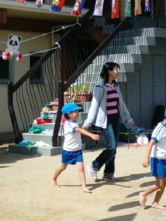 今日は、甥っ子姪っ子の運動会を見学に行きました。 去年から、とある保育園に通う甥っ子、姪っ子。去年の運動会は2人とも当日熱を出して運動会は欠席。今年は「おば、(私をオバと呼ぶ甥っ子達。人が聞いたら難しい言葉使いをする子供だなぁと思うだろね)運動会来てくれるよね?」と念を押されていたので僅かな時間しか見れなかったけどとりあえず運動会に向かった。 行くと、年少さんの競技が終わり、「次は年長さんで~す」と言うアナウンス。 子供達が入場している間私の感覚では「年長組さんは、この日のために練習を繰り返して来ました。始めは出来なかったお友達も、先生やお友達の励ましで頑張ってできるようになりました。来年は1年生。みなさん、成長した姿を応援してあげてくださいね~」な~んてアナウンスが入るのかと思っていたら 「はいはい、みんな、競争じゃないんだからね~!最後まで出来た人が勝ちだよ~!競争じゃないよ~!」とマイクで延々と同じ事を繰り返し繰り返し・・・・。 年長さんの競技は、マットで前転と、平均台を渡って縄跳びで戻る。まるで体育の授業・・・。 甥っ子は年中さん。年中さんの競技は、ハンカチ落とし。・・・・・・これは本当に運動会? 年中の入場の時のアナウンスも「は~い、年中さんで~す。お母さんと一緒にお手手繋いでいいね~」・・・・・・。終わり? 終わり。 来賓の方々の競技も、僅か3M位を走って(歩いて)ジャンケン。 う~~~ん・・・・・・・。 ごめん、弟よ、第3者の立場で観ている方は、保育参観を見ているような感じだったよ・・・。 運動会も保育参観の一環なんだけどもうちょっとどうにかならなかったのかなぁ・・・。 待機している子供達もバラバラ。砂遊びをしたり、階段で遊んでみたり好き勝手な事をやってる。 私自身も幼稚園卒業。子供達も幼稚園卒業。 保育園って、どこもこんな感じなんだろうか。臨時で保育園に勤めていた所はもうちょっと本格的な運動会だったような気がするが・・・・。 それぞれの園で、それぞれの考え方が違うんだろか。それとも、文部省と厚生省の違いだからかな? それにしても行くところ、選ぶ所でこんなにも違いがあるんだね~。 初めて知りました。 勉強になったよ。うんうん。