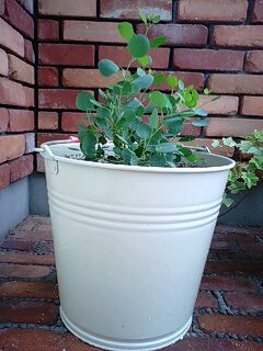 数年前から、ブリキのバケツが欲しくてずっと探してたんだけど ある程度の大きさのものは ↓ ”高品質”ブリキバケツ(ガルバナイズド)※8号鉢カバー向き【PUP090529MJ05】 高い!! 鉢に、しかも外に出しっぱなしで すぐ錆さびになっちゃうのに そう高額は出したくない。 ってな事を昨日アレンジ先生と話していたら 「じゃぁ、ホームセンターで缶のバケツ買ってきて 自分でペイントしたらいいですよ。 その方が安く付くし、自分の欲しい色にも出来るし わざとヤスリで擦ってアンティーク風にも出来るし。」 なるほど~~!!! って事で、夜な夜な作ったのが これ 可愛いでしょ? ユーカリを植え、玄関に置いた。 私は昔から部屋の模様替えも片付けも 「やりたい!!!」と思ったら 今すぐやりたい!!!!! 明日まで・・・なんて待てない性分。 だから夜中に ゴソゴソガタゴトドッタンバッタンと部屋の模様替えをしては 下の階で寝てる婆ちゃんに 「何しよっとね~~~????」 と 言われたものだった のんびりO型のくせに どっかセッカチ。 「待つ」と言う事が苦手。 そんな植え主?に似たのか 我が家の玄関は南向きなので一日中お日様が当たり ユーカリなどの植物はモリモリスクスク一気に育つ育つ!! 2年前に買った、丸葉のユーカリは 殆ど苗のような状態で買ったのに 今じゃすっかり大木になってしまった。。。。。 このユーカリもさっさと「木」になるのかなぁ ♪この~木何の木 ユーカリの木~