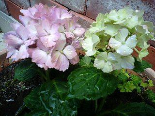 紫陽花を植えました。 昨日、娘のアレンジの先生のお店に行ったら 「ひ~さん、珍しい紫陽花仕入れて来ましたよ」 ほんと、この色ってなかなか無いよね~。 右側の黄緑色も次第に左側のようにピンク色に変わって来るんだって。 紫陽花って、大好きな花の一つ。 私の実家は昔、婆ちゃんが花が好きで 一年中花が咲いていた。 紫陽花も玄関の横と、庭と裏庭に3箇所も咲いていて 6月になるといつも枝を切って部屋のコップに(花瓶じゃ無いところが婆ちゃんらしい) 刺して季節を楽しんでいたのを思い出す。 結婚してしばらくした頃 婆ちゃんに紫陽花の切り枝を貰って植木鉢に植えてみたんだけど なかなか根付かずに枯らしてしまった。 今度はちゃんと鉢で買ってきたし 大きく育ってくれるかなぁ?
