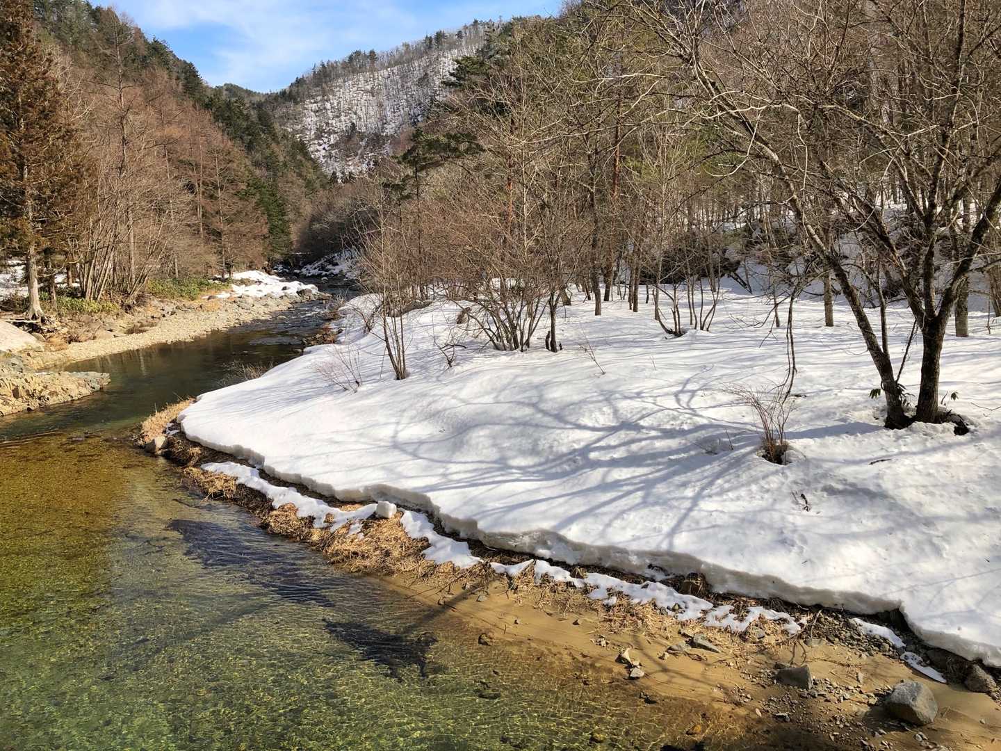 渓沿いの積雪も多いところでせいぜい1メートルほど。