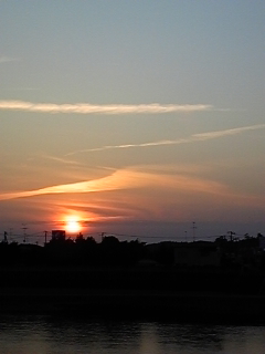 昨日の夕方 愛犬の散歩の時に写した夕暮れ です。 とっても、きれいでした。 しばし、立ち止まって 見とれていました。 朝の 青空も素敵だけど、 今の季節の 夕暮れの空は 芸術的ですよね~ ちょうど、 飛行機雲が何本も右往左往に、伸び ていました。 同じ時間に、こんなにもいっぱい 上空を 飛んでるなんて・・・・不思議な感じでした。 元気になって、 こうやって、散歩ができる幸せ。 今・・・思うんです。 やろうと思うことは先延ばしにしないことって。 自分の思いはそのときそのときに 素直に伝えようって 他人の悪いとこをとやかく言うより、いいところをどんどん探そうって。 でも、今自分がやりたいことをちょっと我慢して、誰かのことを優先に考える事 も大切に思います。 結果、誰かに喜んでもらえれば それが、自分にはねかえ ってきますもの~ ちょっとの我慢で、自分もうれしくなれれば それがいい。 頭に白髪がふえてきたんです。 見た目にはわからないんだけど、 どうも、一本だけめだつのがあるんです。 う~ん、 白髪だけど、一本でも、大切だからと、抜かなかったけど、やっぱり 気になるから抜こうと、思って引っ張ってみたら、痛い 元気な根っこなんです。 生きてるんです、白くなったけど、根っこがしっかりしてるん です。 抜くのをやめました。 私の大切な体の一部かなって。 連休も終わりですね。 さあ、明日からまた 頑張りま~す