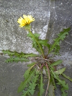 今年は 季節が おかしいですね・・・ 散歩中に 黄色い花を発見。 近づいてみたら、 なんと、タンポポでは ありませんか~。 それも、コンクリのすきまから、根性で伸びて きた、タンポポ。 生命力の強さに驚きました。 タンポポが咲いたら・・・春を感じていたのに、 今年は暖かい秋だから、春だと思ったのかな。 桜もさいたところがありますからね。 元気をもらいました