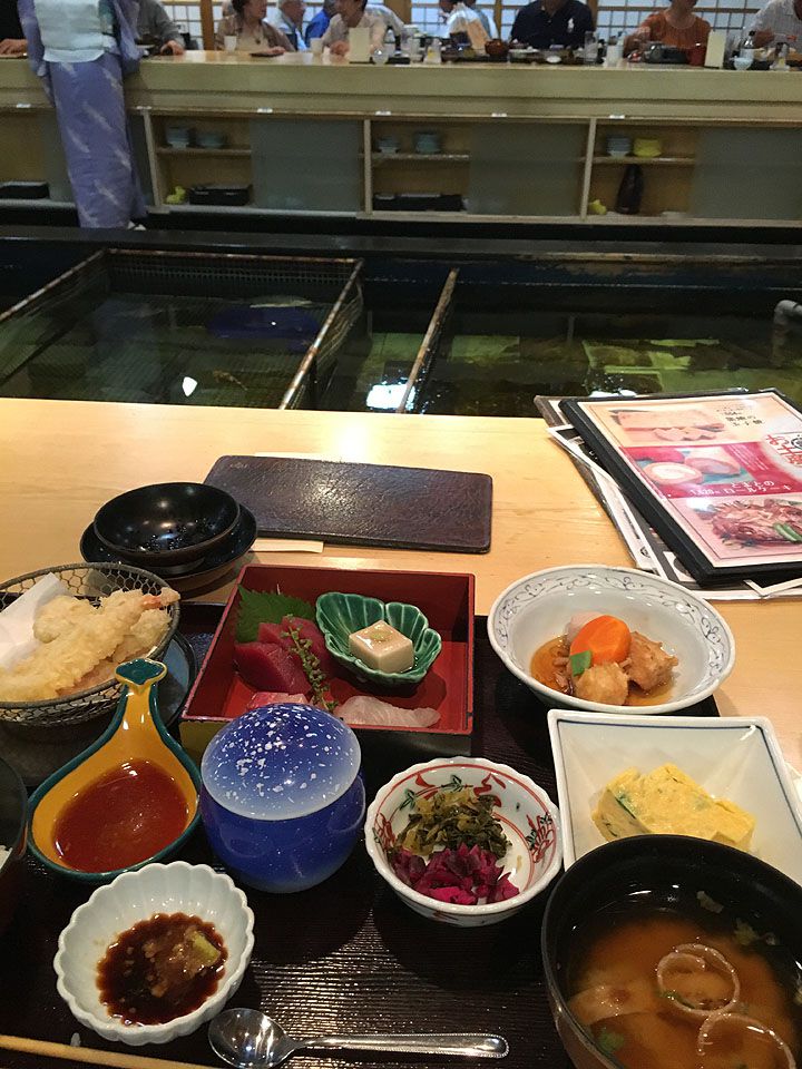 帰りには、大きな生簀がある高級割烹の刺身天ぷらランチ券をくれます(笑)