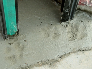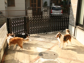 本日朝から門扉の工事と、ガラスの取り換え作業で、業者さんの出入り。なので今朝は早くに起きて長~いお散歩わんずのお部屋もガラス交換だから、ゲージに入りっぱなしになっちゃうもんね午前中に門扉の工事を行ってもらい、今日は柱建てとセメント入れておしまい。残りは月曜日に仕上げなんだって。午後はガラス屋さん。それもついさっき終わりました。午後はずーっとウズウズしてたのです。セメント触りたくて笑で。結局誘惑に負けて、わんず達といたずらしてきました。左から、バロン君イヴちゃんカイ君の足跡カイのはちょっと失敗しちゃったので、改めてもう1つの柱の下にペタリきっと旦那さまが帰ってきたら怒られるんだろうケド…満足満足笑この↑写真を撮りに行ってる間、お部屋で待ってたわんず。ドアの向こうで待ち構えています。なんて可愛いこととーっても可愛かったから(親ばか。笑)調子に乗ってもう1枚。。ひぃぃぃ~…なんてこと怖くなっちゃいました。。反省…笑私がお部屋に戻ると、みんなパワー全開で遊ぼう攻撃です。カイ踏み台にされてますケドも…門扉が完成したらいっぱいお庭で遊ぼうねそれまでそのパワーはおとーちゃんにでもぶつけて下さい。。願