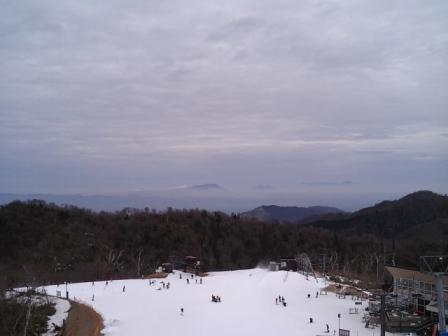 奥に見えるのがネハン像。本日は天気が優れなかった。ダイナミックコースは終わってた。1週間持たなかった・・・。悲しか・・・。1週間持たなかったのはスキー場にとってもきついはず。本日は7:30にチケットを買ってゲレンデへ行きました。雪質はザラ雪、午後からは気温も上がりシャバシャバした雪に変わった。全体的にきつかった。パラダイスコース終点付近のちょっとしたなだらかな所はほとんどの人が転ぶポイントとなっていた。圧雪も効いていなくエッジを引っ掛けやすくなっていた。クォーターパイプ終了の予感。ボックスも斜めに傾けられていてクリアするのは難技。しかし、今日はほんとに日曜日か?というくらいリフト待ちが無かった。(12:30時点)しかし、パラダイスコース中間付近には初心者の座り込み(デモ?)が多くマイッタ。それを抜ければ混雑は無かったと思います。明日からは板の手入れを行います。ソールが白色のせいか板が目に見えるほど汚れてしまってた。あとこんなこと書いていいのかわからないけど先週のこと第2リフト(距離が長い方)の降り場で10時位に係の人はお菓子食べてた。ポテトチップスみたいなやつを。10時の休憩かもしらないけど何かあったときにはリフト緊急停止できんのかいって思いました。とにかく見えるところでお菓子をほうばるのはご遠慮下さい。見てる人は見てますよ。