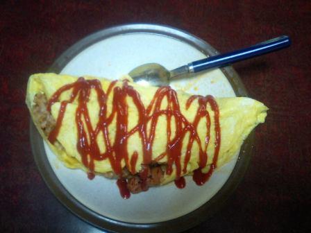 今日は料理人になってしまった。本日のメニューはオムライス。こないだ宮崎に行ったとき勉強してきた。イオンのオムライス屋で窓越しに研究した成果を見様見真似でやってみたらこんな感じになった。味は?見た目は10点満点中5点。まぁ素人がするんでこんなもんか・・・。