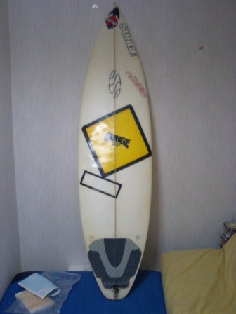 アップするの忘れてました。最近購入したサーフボードっす。メーカーは良くわかりませんがスノボで言うバートンやサロモンクラスではないことは確かです。大御所クラスのメーカーは調べたところ多分ですが’アルメリック’’シークエンス’その辺だと思います。まだ良くわかってないのであしからず・・・。そして購入して半月経過しますがまだ波乗りしてません。
