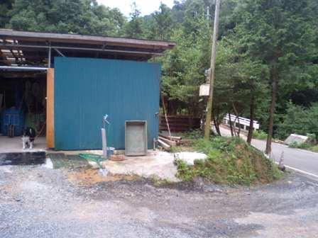 全景写真右端に見えるのが今回製作しています小屋でございます。ちなみに左に見える方が専務です。とりあえず小屋の中身です。隙間はモルタルでふさぎました。専務のドアップです。最近日焼けして黒くなってます。猛暑のせいかプチぷんぷんのようです。本日は専務が見張ってたのでサボれませんでした。