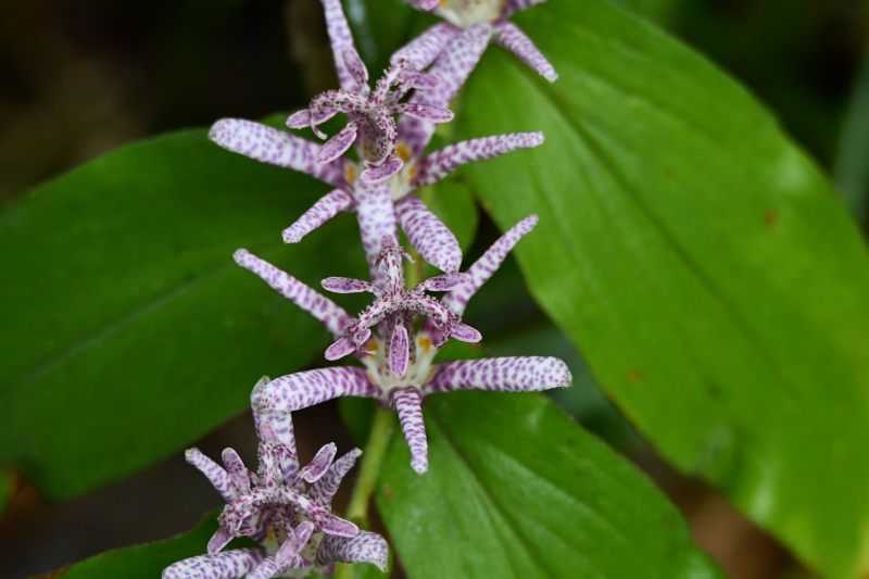 ホトトギス(杜鵑草)ユリ科ホトトギス属の多年草 日本固有種北海道西部、関東地方以西、四国、九州の山地の半日陰に生育花被片の紫色の斑点が鳥のホトトギスに似ているからが由来タイワンホトトギス(台湾杜鵑草)ユリ科ホトトギス属の多年草環境省絶滅危惧IA類(CR)台湾で普通に見られるが日本では西表島に生育街中で見られるのは園芸種