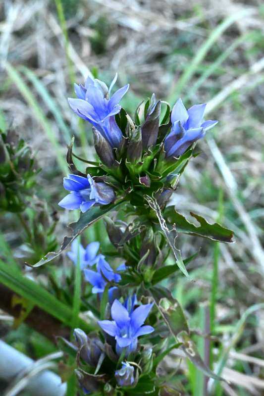 リンドウ(竜胆)リンドウ科リンドウ属の多年草本州~九州までの山地や丘陵地、草地などに生育する熊胆よりも苦くて薬用になることからが由来絶滅危惧種の花の実を探しに行ったら、草刈りがされていて棒が立っているところだけ草刈りがされていなかったのでなんだろうと近くへ行ってみたらリンドウでした。探し物は年々少なくなっていたので、もしかしたら絶えてしまうかも・・・