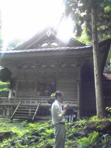 イエスの墓を後にした私たちは一路、十和田湖へ向かいました。喜楽天道さまのリーディングによると 東北のハートの働きをしているのがこの十和田湖だということで 東北地方の中では岩木山と並んで大切なポイントのようです。八戸からずっと車は水気を含んだ木々の中を走っていましたが こういう水分を含んだ木々が群生している地域は 私にとっては過ごしやすい地域です。水のあるところは 瀬織津姫のエネルギーとご縁のあるところです。十和田湖の湖畔に車を停め いよいよ十和田神社の境内にはいると 両側で天高くそびえる巨木たちが私たちを迎えてくれました。この神社のご祭神は日本武尊ということになっていますが 普段は別のエネルギーが お出迎えしてくれるようですね。龍神たちです。 本殿に続く階段を上ると祝詞が始まり そこには沢山の龍の絵が飾ってありました。ああ、やっぱり龍ちゃんが公式に認められている神社なんだなあと思いました。本殿からずっと左奥にいくと修険道の修行場や祠がありますがそちらは修行僧の重いエネルギーがあります。熊野権現と関わりがある場所ですね。このように修険道の場としてかつては使われ それがそのままに放置され そのエネルギーが残っている場所は 重い地場を作っていることが多いようです。この修険道については 4月に熊野に行った折に 貴重な経験をさせていただきました。過去ログに熊野シリーズを書いていますのでよろしければそちらもご覧ください。今回は そこまで見ることは出来ないので そちらはスルーさせていただきだれか他の方がその場の浄化をされるのを待つことにして 私は本殿付近でのみご挨拶させていただきました。大歓迎されていましたよ。この写真は北海道から参加してくださったありが父さんさまがお祈りされているのを取ったものですが 上から光が入り ありが父さんさまの背中に紫の光が差し込んでいます。この神社ではおみくじを皆で引いたのですが こちらの社務所の方が本当ににこやかな素敵なおじちゃまで 私たちがおみくじを見合いっこしているのをみて満面の笑顔でニコニコと嬉しく見守ってくださっていました。私はこの時からずっとどこへ行っても東北の人々の心の暖かさに触れ続けることになります。