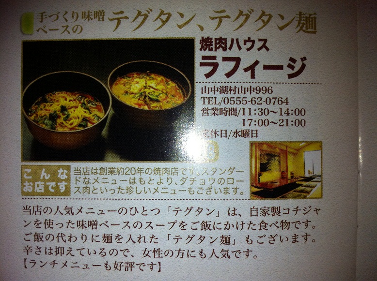 もちろん焼肉も美味しいよ、東富士有料道路山中湖出口からすぐなんです。