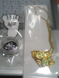 も~~~部屋じゅうアクセだらけです!!(笑)Collection Dominaサンで購入したアクセサリーが一気にドドンときましたよ~。これだけ来たらちょっと圧巻ですね(笑)いつも可愛くて迷ってしまうアクセサリーのお店「Collection Dominaサン」はコチラ↓ではでは、買ったものをドドーーンとネタバレ&紹介。かなり画像多いと思いますが…飽きずにお付き合い下さい!まずは同梱で単品買いをしたモノこれはお値段の割りにしっかりした作りで、カワイイ!これだけ箱に入って届いたからビックリだわ~チョウチョパープルにしたんですが、紫スキには納得です。ちゃんと専用ケースにいれてくれて安心だし。パヴェハートピンクを。ハートが窪んでるんですよね~。290円だし全然OK!単品買いは普通に満足です。さ~て、次は福袋。まずは…乙女だから(…は?)やっぱり押さえておきたいじゃないですか!そんな感じでネタバレどうぞ!・黒のバラの形の髪ゴム(カワイイしお上品。髪の毛長いのでちょうどいいわ~)・水色のイアリング(もっとジャラジャラ希望だったんですが、これもお上品よね~)・ピンクのバラのブレス(ピンクでキレイ!)・ハートに小さいバラがついたネックレス(これキャワイイよ~)・パールのネックレス(どこにバラが?!って思ったら小さいバラがボールの間に:笑)これいいーーー!!…まではいかないけど、お値段&全体的に満足です。バラって普通にお上品イメージだからいいよね~。…そして、箱の4分の3を占めていたコイツもネタバレしまっす!↑このリンクはモバイル限定の福袋みたいです~。PC版は第3弾まで即完売だったみたいで…すっごいわ~~~。第1弾で買えた自分が本当にスゴイよ…。ではでは、まずは左から・天然素材のネックレス(う~ん、これはあんまり…)・ハートのネックレス(カワエエ~~!ハートの中に青と赤の石が入ってるの)・パールのネックレス(3連なんですがこれは普段使いにもいけそう!)・ネックレス(トップ画像にもあったけど…これもどうだろうな~つけたらカワイイかな)左から・小さい星がちりばめてるネックレス(う~ん、ちょっと子供っぽいかな~)・ネックレス(カーテンに引っかかってそう:笑。でもこれスキです!)・バラのネックレス(バラきたーー!このモチーフ美味しそう:笑)・十字架のネックレス(ピンクのパールチェーン。ワンピとかに合いそう)・ピンクパールのブレス(ブレスはあまりしないけどこの機会に)・ハート型の髪クリップ(ホワイトとパープル2種)・トゥーリング3つ(黄色のお花とピンクのお花が2つ)・ポーチ(和柄。これどーなってんの?って思って販売ページ見たらアクセとか色んなモノをいれるために作られてるものらしく、ちょっと感動)・バラのコサージュ(ベロアなので秋から活躍予定)・カチューシャ4種(うわ~い、カチューシャこんなにもいらないよ~:笑)お財布。カワイイし作りもシッカリしてるんだけど、お財布はあるので母親にプレゼント。来月誕生日なので少し早いプレゼントって事で(笑)福袋の商品がプレゼントかよ!!でもちょうど財布が無かったらしく喜んでくれました。統括として、3000円でこれだけ入ってたら満足です。開けた瞬間何を見たらいいか悩んだし(笑)これで当分アクセはいりませ~ん。って書きながらドミナさんは良いのを置いてるので、また買っちゃいそうで怖いわ~。だって…これが気になってしょうがないんだもんよ~~~!!!