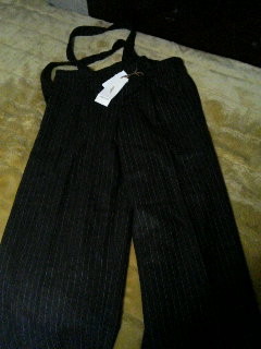 RAW EDGEさんのオークション落札しちゃいました~(汗↓ショップはこちらアフェ画像が無かったので商品はコチラ。お得ボトムス3点セットということで気軽に入札しちゃったら落札しちゃってビックリ!でも、まあ金額も安かったしラッキー★とか思ってたら…サイズがLだったという事実っっ!!!!私はMなんですけども~~~まあ、サイズ表を見てなかった私が悪いんですが…で、コーデュロのロールアップパンツとガウチョはギリギリはけたんですがワイルドパンツだけどーーしても大きいの~~~~これが1番可愛かったのに~~~~~!!!↓コレ写真映りは悪いですが、茶色の縦じまでサスペンダーがカワエエんです~。でも泣く泣く交換希望です。Lサイズになりますが、希望の方がいらっしゃったら私書箱からご連絡下さい~。他にも交換希望があります。フリーページからどうぞ~!!