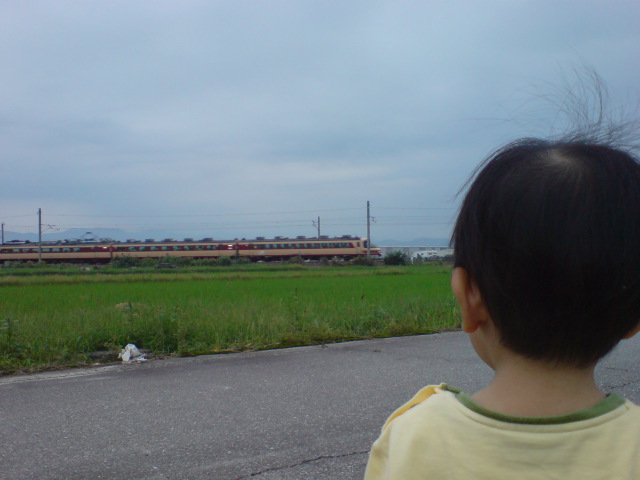 踏切が鳴ったので、電車を見てると、久しぶりにスーパー雷鳥が登場(違)