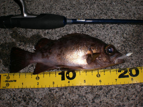 皆さんこんばんは~今日は夕飯を食べてからメバリングに行って来ました~まずは家から車で10分弱の港に行ってみる事に!この港でメバルが釣れた!って話しは一度も聞いた事が無いけど・・・もしかしたら居るんじゃい?て期待を込めて向かいます!現地到着!準備をして常夜灯のある堤防に向かいます。海を見て・・・・激濁りでゴミもプカプカそして独特の油臭いニオイ・・・そうです・・・この港・・・ゴジラに出てきたヘドラが誕生した港ですそれでも折角来たんだからって事で数投しましたが・・・場所移動ですここから西へ15分ぐらい行った港に到着!今度こそ気合を入れてメバリング開始です!最初は湾内で。数投してはちょっと移動でやりましたが全くアタリ無し今度は苦手なテトラに移動してキャスト!1投目でメバルが来ました~16センチだけど最初の1匹目です。暫くして同サイズをもう1匹追加!その後18センチのカサゴがヒット!テトラを移動しながらあちこちやりましたがその後はアタリも無く23時に終了としました。前回よりはサイズアップしましたが・・・未だ20センチの壁を超えられずまた頑張ります頑張れよ!のポチッお願いします(^^) ↓ ↓