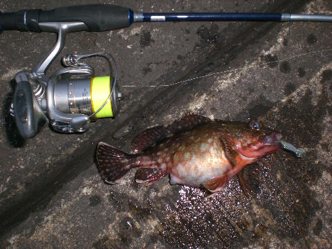 皆さんこんにちは~昨夜はデカメバルを求めて東伊豆にメバリングに行って来ました~日中に何とか仕事を終わらせていざ東伊豆へ18時頃kojikoji1091さんを迎えに行き、二人で最初のPへ!全くアタリが無く即移動です(笑)次のPの1投目にアタリが!キターー!!自己記録更新の23センチですやっと20センチ越えを達成しました~もう満足で帰ってもいいやーって気分です(爆)爆)ここではこの1匹のみで終了です。次の場所でYaGiさんと合流YaGiさんとははじめまして~~です気さくな方でめちゃ楽しくて元気だな~って印象でしたそして何と!YaGiさんから緑のお猿さん(松SP)を貰っちゃいました~ありがとうございます大事に使わせてもらいますね~その後3人でランガンです数ヶ所廻って次のPに到着!ここで2投目に・・・中層をゆっくり巻いて来るとクン!クン!ってアタリ!キターー!!ヤッター!26センチのメバルをゲット~もちろん自己記録更新ですその後は暫く粘りましたがアタリも無く次の場所ではうねりが入っていてやはりダメ・・・ここでYaGiさんが終了としました。お疲れ様でした~。その後、kojikojiさんと何ヶ所かやってみましたがメバルからの反応も無く終了としました。今回、自己記録も更新出来て大満足の釣行でした応援してやるよって方、ポチッっとお願いますm(__)m ↓ ↓ ↓ ↓