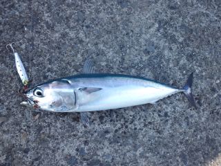 皆さんこんばんは~昨日はオイラの地元で白墨大王さんとorangepackerさん、そしてツイッターのフォロワーちまさんと白墨大王さんのお連れさんのFさんと5人でジギングコラボ。オイラ達が到着した時に、先に投げていたorangepackerさんが丁度ワカシを釣り上げたのでもしかして夕マヅメ爆っちゃう?なーんて期待して、15時前からキャストし出したけど・・・めちゃ激渋結局日没までオイラ達5人と地元のジギンガーさん3人が加わって投げたけどオイラと白墨さんがワカシを1匹づつ釣って日没になっちゃいました鯖の爆釣期待したんだけどな・・・あれだけ居た鯖何処行っちゃったのー??日が沈んでから太刀魚狙いにチェンジ!こっちも渋い状況20時までやってオイラが2匹(F4)と白墨さんとちまさんが1匹づつでしたここでちまさんは終了。オイラ達4人は場所を移動して太刀を狙ったけど・・・アタリすら無し腹が減ったのですき家で遅い夕飯。ここでorangepackerさんが終了。第3ラウンドはチヌ狙い!日付が変わる1時近くまでやったけど・・・最後の最後に、チヌはダメだったけど白墨さんとFさんが良型のカサゴをゲットしてくれました~良かった~今回はめちゃ激渋だったけど5人でワイワイと楽しい釣りが出来ました~また一緒にリベンジしましょうね~