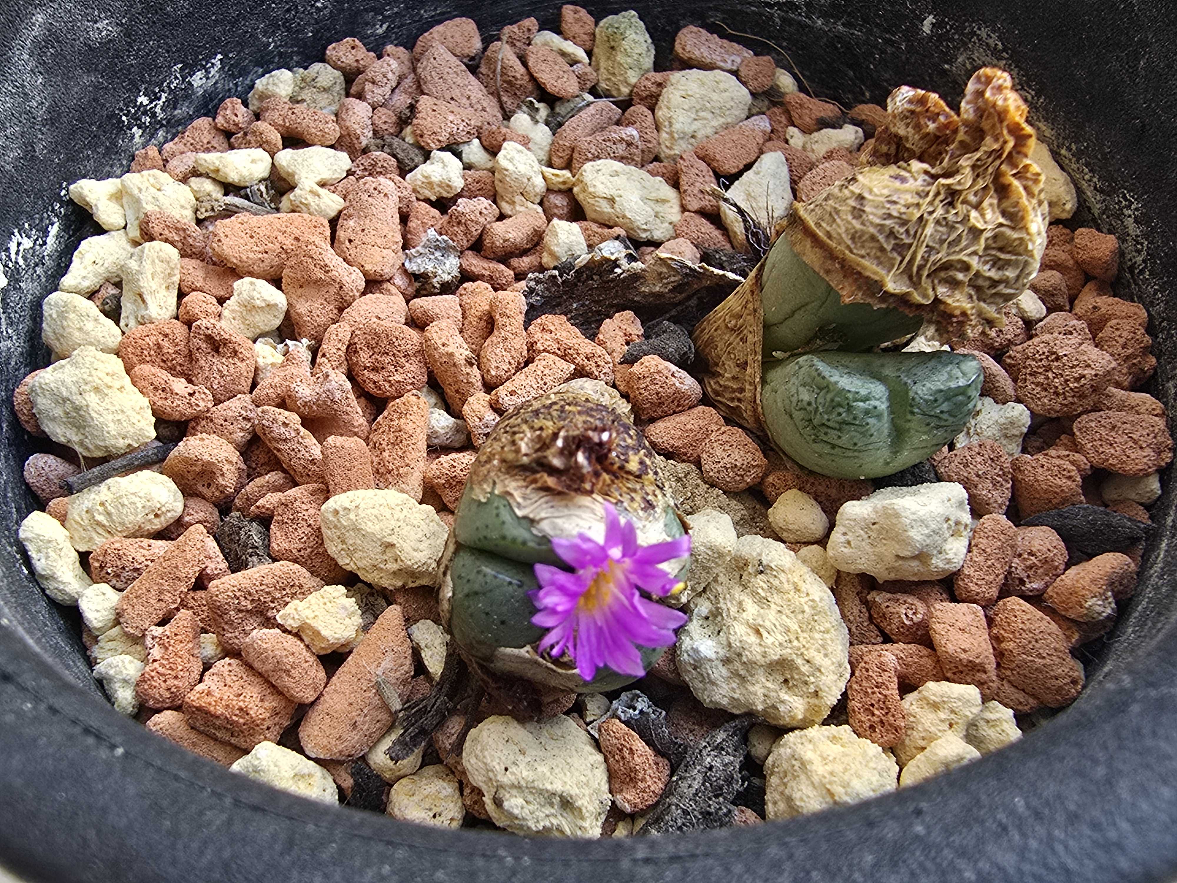 昨年から、いろいろ買い集めたリトープス気づけば、殆ど、消えてなくなりました私には、ダメなようですその中でも、まだかろうじて残っている子から、花が咲きました小さいですが・・・気づけて良かったですそして、ルコー草も咲いてくれました初咲きは、金曜日の朝に気づきましたよ~そして、白薔薇からは、ピンクが咲き始めました挿し木したローズマリーの花が咲きましたミセバヤ、こちらも、今年挿し木したものです。