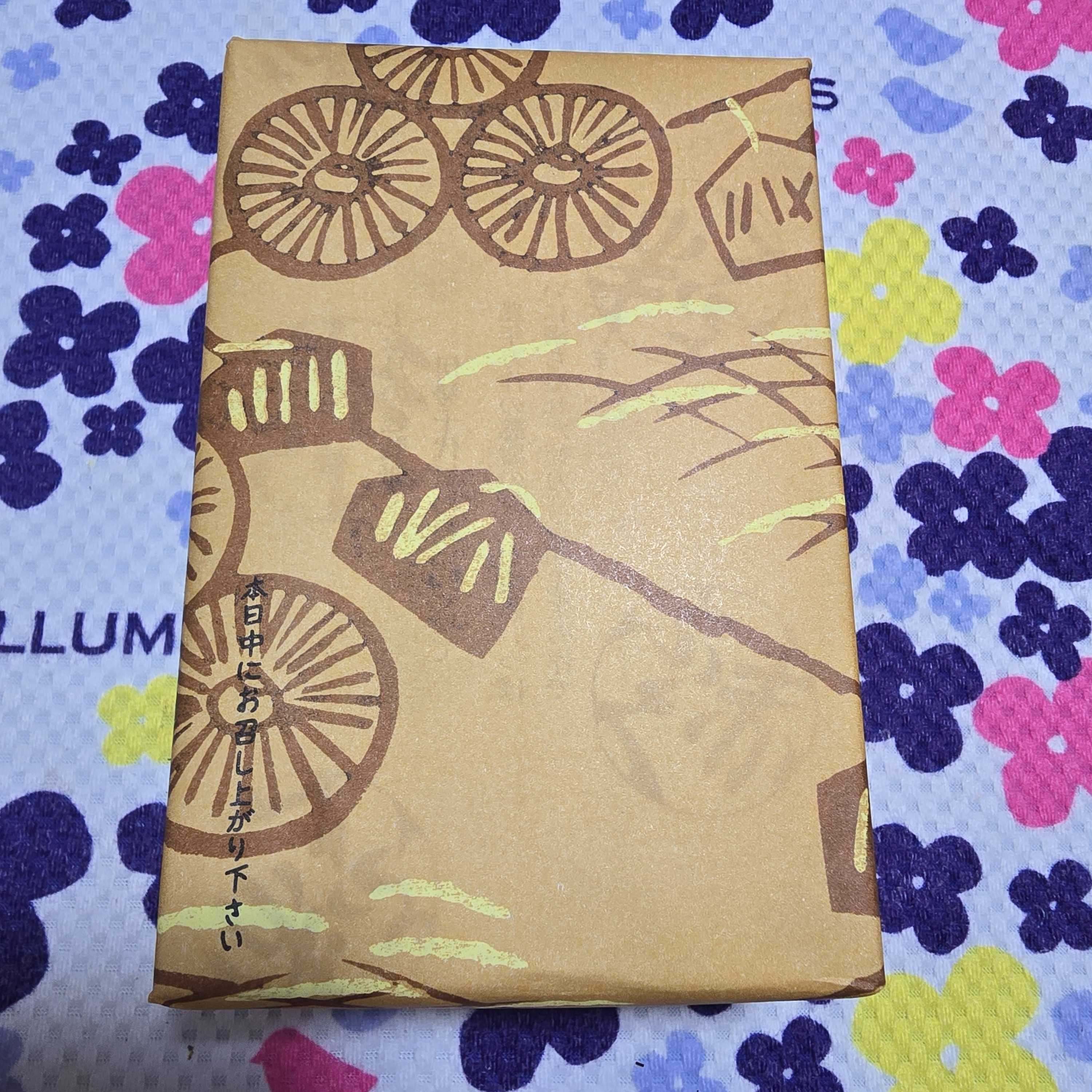 本来なら、仕事が休みの日は、悩むところですが・・・とりあえず、予約だけしました旦那が居たら、彼の分はないからどうしようかと考えていたけど・・・推し仲間&福岡さんに会うと、お昼前に出かけたので11月の朔日餅は、ゑびす餅黒糖の味わいの餅は打ち出の小槌に、柚子風味の黄色い餅は小判に見立てて、商売繁盛と開運招福を祈願します。(パンフレットより)小箱 900円(税込)箱を開けてみて、ビックリ こちら、絵葉書になってますよ6個入りです (追記)めっちゃモチモチして、美味しかったです自称こし餡苦手の父も息子君も、食べてましたよ~勿論、旦那が帰って来る前に食べ終わり、証拠は残してないですよ~