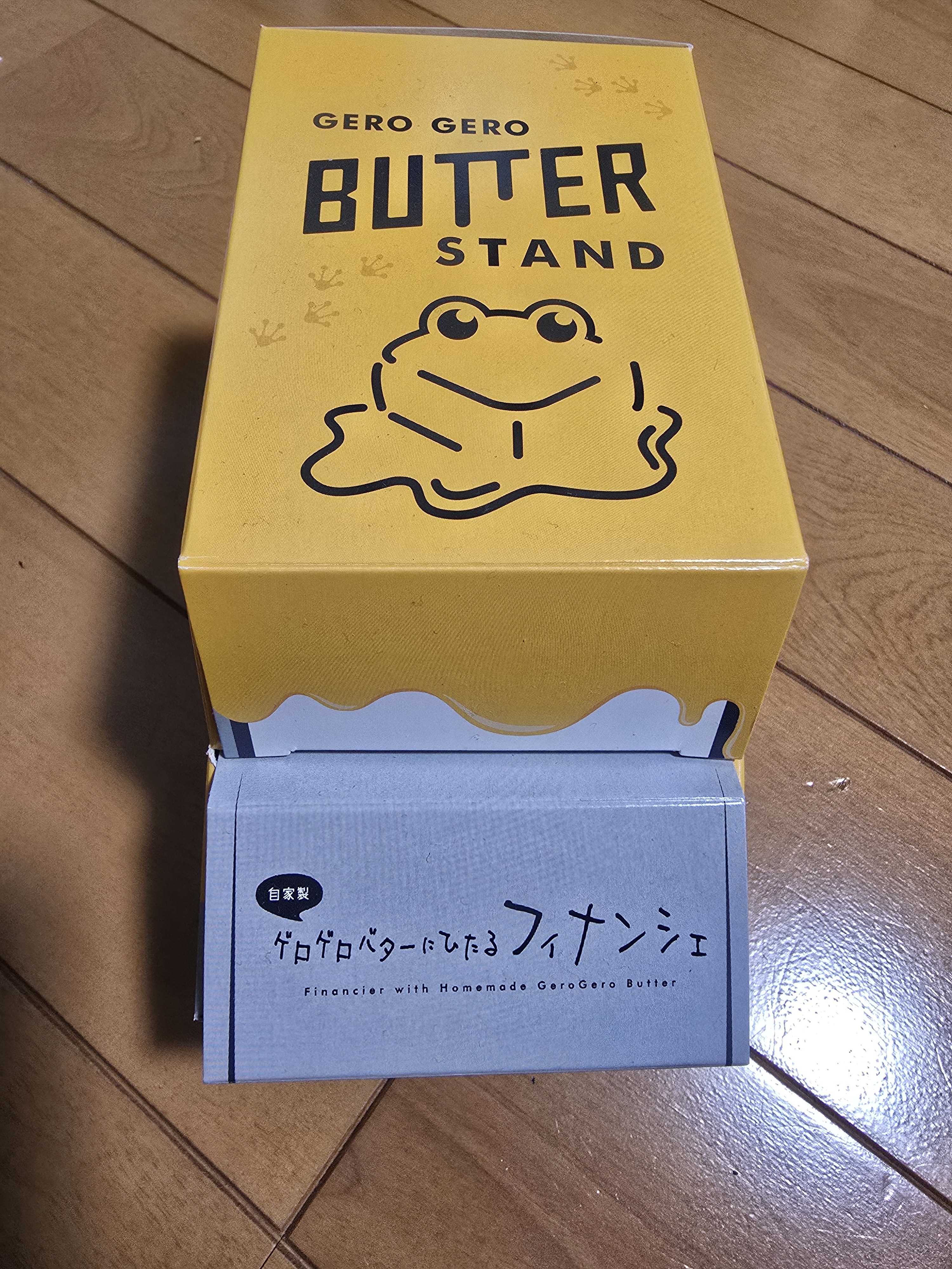 息子君と下呂旅行に行ったのは、8月中旬その時「ゲロゲロバタースタンド」で買ったゲロゲロバターにひたるフィナンシェパソコン横に置いてあり、横目で見つつ食べてなかった賞味期限ぎりぎりになってから、食べるという私10月末に食べました文句なしの美味しさでしたもっと早く食べれば良かった~あまりの美味しさに、5個入りですが・・・私と息子君が2個ずつ食べちゃいました父と母は、二人で半分こ勿論、旦那の分はなしです