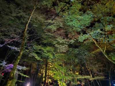 香積寺のライトアップも、ちょっと見て行こうと(20時頃です)2年前にはなかったライトアップ、めっちゃキラキラしてます動画録ればよかったかもいつもは、階段から上がるんですが・・・今回は、坂道から行きました参道はこんな感じです竹で出来た灯りは、約1,000基並んでいるそうです。壮厳で静寂な雰囲気を味わってみてください。(HPより)ライトアップ会場は、賑わってますが・・・こちらは、ちょっと違った雰囲気があって良かったです