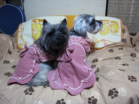 N家の御用達のハッピーだわんの閉店セールをやってたんで、またまたフリフリワンピを大量に買っちゃいましたぁ~これはその中の1枚で~す(* ̄▽ ̄*)にゃはそうそう、N家は只今節約生活ちゅうなんで、パパには内緒で~す!って言ってももうバレてるな・・・( ̄▽ |||)アハハ、、、でもどう?2ワンコ共似合ってるでしょ♪