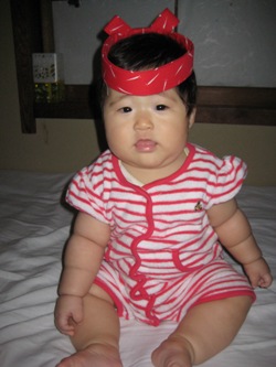 今日じいじがあさひにお祭りのハチマキを買ってくれました!!ダボシャツとお揃いの柄です。お寿司屋さんにしか見えません(笑)あさひのこのまゆげ・・・たれパンダ並みに垂れてますね(笑)お祭りが楽しみです。