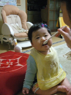 とっても成長しました!!たとえばこのイス私のおじいちゃんが小さい頃に買ってくれたもの。このイスはあまり好きではなかったみたいだけど今ではしっかり座っています。そして、離乳食。何でも食べます。今では早くて3回食にしてます。朝、昼、晩と何でも沢山食べます。そして、一人でスプーンを持って食べたいみたいで離しません。そして、あさひは昆布が大好きです。これは偶然ですが、姉と一緒にピース友達とおもちゃの取り合いです。