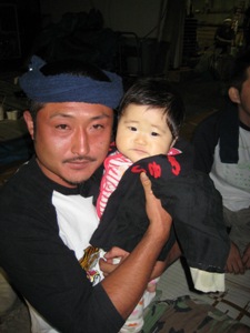 この町内は私の実家の町内です。私とあさひもいざ出陣!!パパも素敵西部若者の正責任者に抱っこ