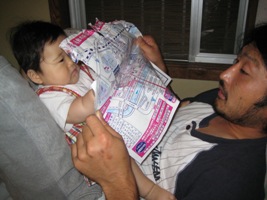 昨日あさひはパパが見ているチラシを食べてみたりぐじゃぐじゃにsしてみたり・・・パパはダメだよーって言っていましたが見ている私はとっても可愛く思いました。