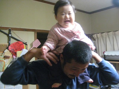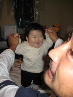 パパと遊んでいるあさひです。こんな笑顔。きっとパパもお祭りの疲れが吹き飛んだことでしょう