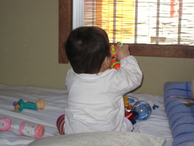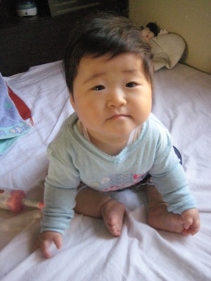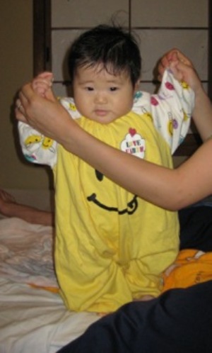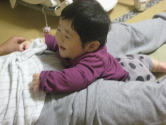 最近あさひは座っている状態から前へつんのめっていってうつ伏せになってることが多いです。この状態から・・・こんな感じに・・・欲しい物にかなり手をのばすようになりました。つかまり立ちも早そうですが、ハイハイももうすぐです!!