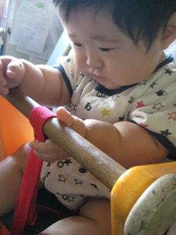 あさひはつかまり立ちをするのが大好きです。とても機嫌が良くなります。私はハイハイを先にして欲しいのですがやっぱり個人差があるのでつかまりだちの方が早いのかなぁ・・・。