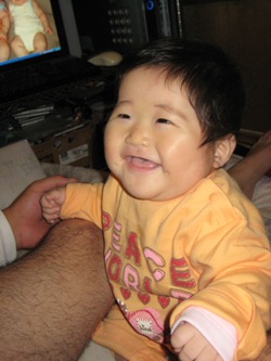 こんなに小さくても?8ヶ月になりました。身長はまだまだ標準には入りませんが、体重は標準のど真ん中!!ぽっちゃりですが成長してるんですね。毎日、毎日、成長していて楽しいです。私も、ママになって8ヶ月。人の親になるというのは、責任重大です。あさひが大きくなるにつれてそう、思います。