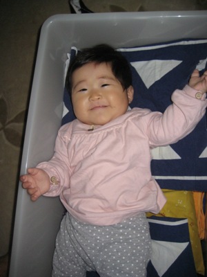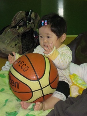 昨日、私はバスケットに行きました。先輩達があさひと遊んでくださってボールを追っかけていました。(まだ、ハイハイは出来ません)グズグズしないでおりこうさんでした