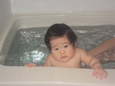 つかまり立ちはほぼ完璧なあさひお風呂でも立って遊んでいました。まだハイハイは出来ませんが・・・もうすぐつたい歩きをしそうです。