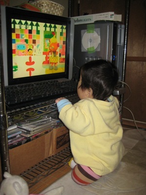 最近、お母さんと一緒や、いないいないばぁっにはまっているあさひです。パソコンで見せていると夢中で離れません。歌が流れると泣いていても、ぴたっと泣き止みます。