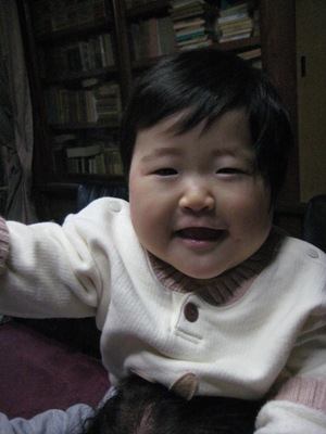 奇跡的にピースになりました。この日はパパがパソコンで遊んでいるときにあさひも一人前にパソコンをみてニコニコしていました。あさひーと声を掛けるとにやって笑ってピースをしているような感じに写真がとれました!!!