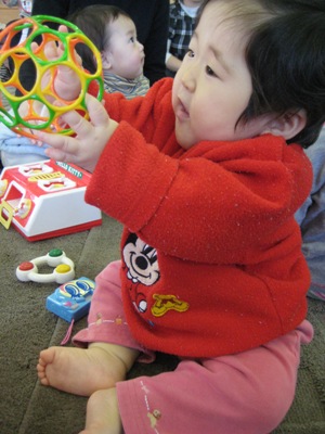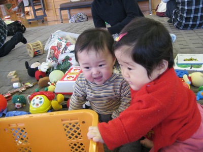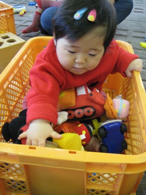 11月12日に9~10ヶ月検診に行ってきました。12時半頃到着して帰宅したのが4時40分。かなり長くかかりました。もちろん子供たちは泣いて騒いで、飽きて、とても可愛そうでした。あさひはと言うと・・・身長 66センチ体重 7.9キロ体重は標準ど真ん中なのに、身長は標準にも入っておりませんまぁゆっくり。。。マイペースに・・・こんな感じに遊んでいました★ゆっくり、大きくなってね♪