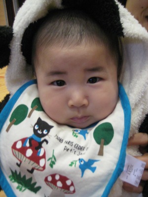 頭に沢山ちょんまげをしてあげようと思ったのですが泣かれて二つで断念・・・。でも二つでも十分可愛い・ ∪´∀`)モキュ