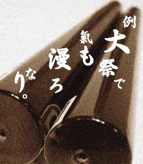 三日間催された祭りですが、本日をもって終了です。(昨日、今日と出掛けてしまったので今頃更新w) 毎度の事ですが、最終日は箕輪門にて三町合同出発式を観覧。カメラマンに紛れて写真を・・・「脚立貸してやるから上がって撮っせ~」なんて勧められましたが「とんでもないですww」と断ってしまった。(単に高所が苦手なだけとかw)腕がないのでこの程度・・それを誤魔化すのにノイズを入れてみた。。(´;ω;`)ウウッ…誤魔化せてないぢゃんww また来年・・楽しみにしてます。☆おまけ☆※掲載の許可・・もちろんとってませんw