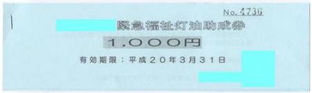 先日、(郭)地区の民生員さんが家庭訪問にいらした際、灯油助成券申請書をいただきました。確定申告のついでに役所へ申請に行って戴いて参りましたw 1000円券の5枚綴り。お釣りは出ないらすいw 原油価格の高騰で家計に大ダメージ?の我が家には大助かりです。(灯油は実家のオイルタンクより補給している・・なんて事は内緒w)1000円券5枚じゃなく500円券10枚の方がよかったかも・・ 以前は、灯油一缶500円位で買えたのに…今は3倍以上だなんてww ついでにぶっぷの食費&もく代も助成して欲しい( ̄m ̄〃)ぷぷっ