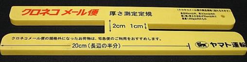 ヤ○オ○に出品してます。小物が多く、落札商品の配送はゆう定形外を中心に利用してました。「配送はメール便でお願いします!」とか・・出品商品の質問欄から「メール便対応できますか?」とか・・メール便は個人的にあまり好まなかったので最初はお断りしてました。厚さも微妙なものが多く、発送時に差額が発生すると処理が面倒かなと思ったものでw 自宅測定で厚さOKのはずが、いざ、コンビニに持ち込んでみたらスケールで測られて「規定外です!(きっぱりw)」とか結構あるみたいなので・・(個人差有り?) でも、コンビニの店員さんが使ってる、あの黄色いスケール・・・欲しいw・・・あれがあったら、「メール便は?」の質問に対し、即座に対応できるのでは??と思い、ダメモトでヤマトさんに問い合わせしてみました。 ・・・で、ちゃっかりいただきました▼「厚さ測定器」 早速使用してみました。便利です・・・ヤマトさん、ありがとう(*- -)(*_ _)ペコリ 最近、出品していてびっくりした事が・・・息子くんが所持していた「カード」なんですが、「使わないからオークションに出してね」と言うので出品してみました。「こんなの売れるわけないでしょが・・」とブツブツ言いながら。。。↑100円のカードが・・5000円に化けました^^;レアカードだったみたいw
