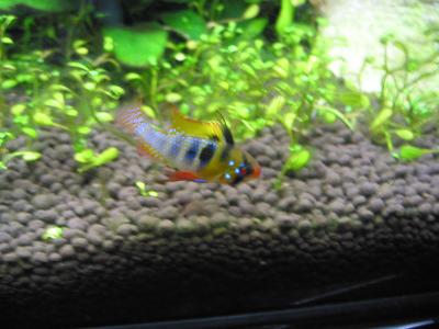 最近日記サボってるようですが許してください。いろいろ事情があるもんで(^^;)今日はパビレオ・ラミレジを載せます。あいかわらず画像はボツですが・・。うちに来た時よりも色のつやが出てきて美しくなりました。水草水槽にはペアが居るのでもしかしたら繁殖可能かも!?今日は特に出来事はありませんでした。春休みもあと一週間!もうちょっと楽しい事無いかなぁ。それでは。