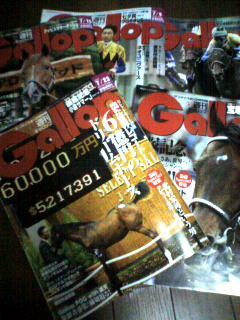 POG(ペーパーオーナーゲーム)ってのをやってみようと、先月末からギャロップを購入してまして、今日で5週分そろいました。てゆうか応募するのに5週分の応募券が必要、って敷居高すぎ。。。今から来年のダービーまで、賞金たっぷり稼ぐ馬を探せ!っていわれてもなにがなにやらさっぱり。。。普段10数頭のなかから1頭選ぶのも当たらないのにたしか全部で7~8千頭から1頭当てるなんて考えただけで気が遠くなりそうですが。商品は香港競馬観戦ツアーらしいです。週末までゆっくりながめてみよう・・・。楽天競馬POGhttp://keiba.rakuten.co.jp/pog/